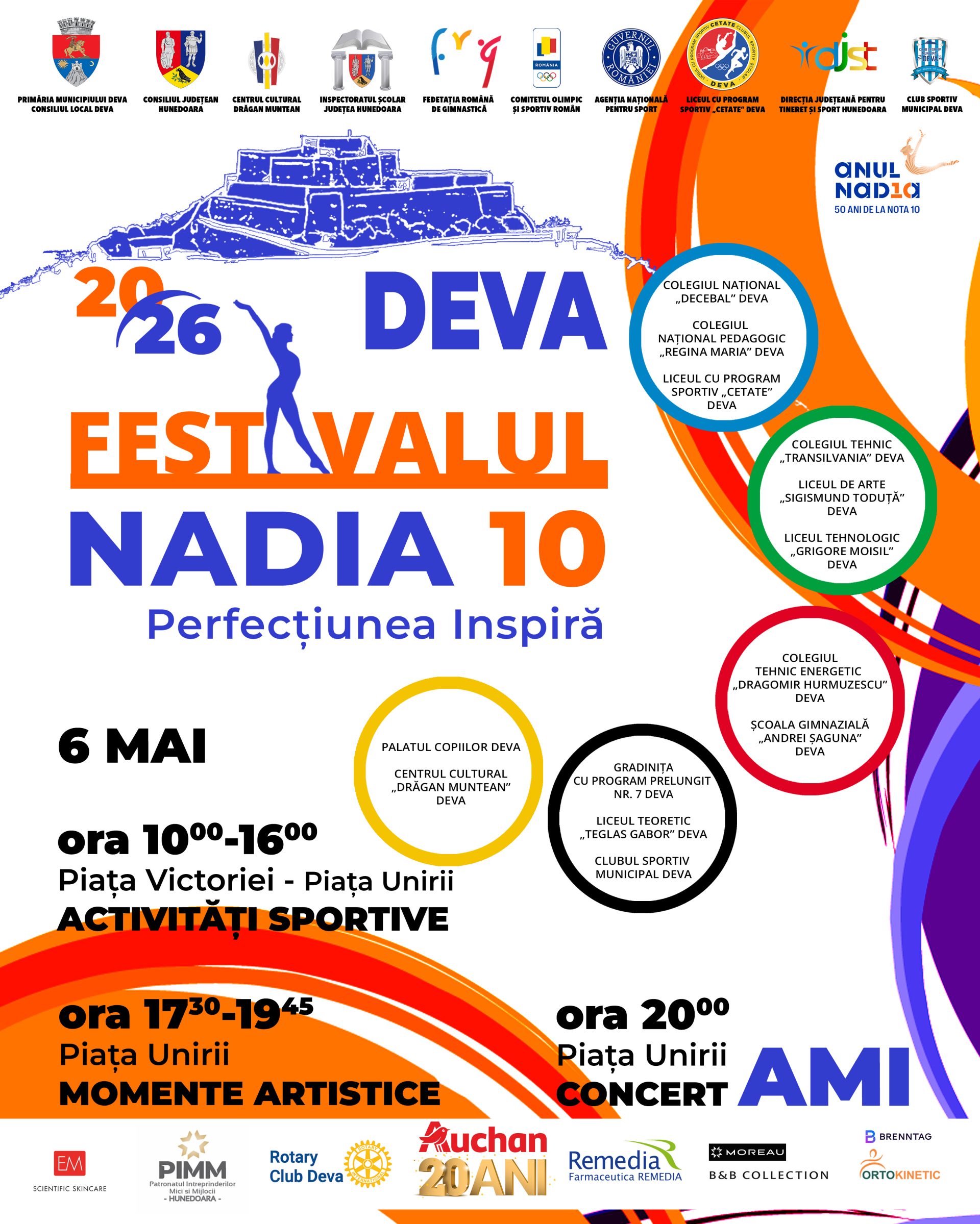 Municipiul Deva devine miercuri, 6 mai 2026, capitala sportului și a energiei pozitive, odată cu desfășurarea Festivalului „Nadia 10 – Perfecțiunea inspiră”, un eveniment dedicat copiilor, mișcării și performanței.